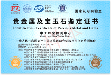 贵金属及宝玉石鉴定证书正反面